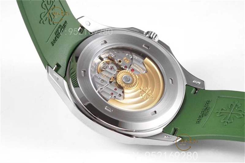 表底采用背透設(shè)計,可清晰的觀察到精細打磨過的機芯。原裝綠手雷腕表內(nèi)部搭載百達翡麗主力324機芯,ZF廠采用的是 美優(yōu)達9015改PP自產(chǎn)Cal.324 SC機芯——大小夾板光澤流動,寶石軸承鮮艷自然,擺輪位置吻合正品。 直徑同為27毫米,厚度僅為3.3毫米,配有21K金中央自動盤,動力儲存最多可達45個小時。