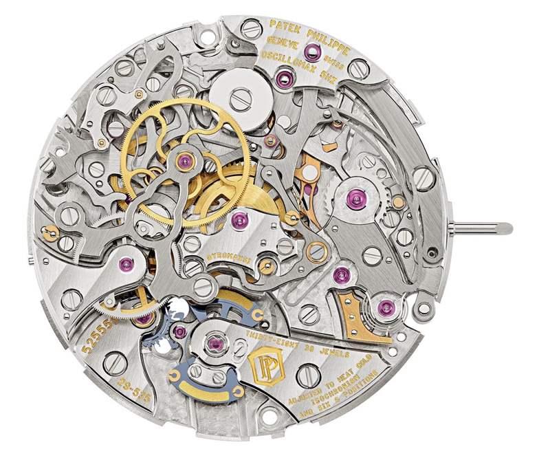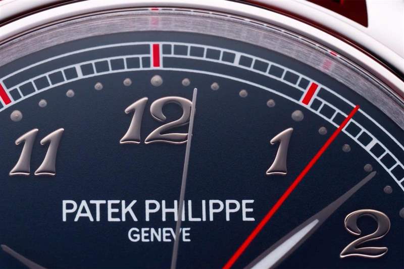 百達翡麗運用兩枚連動的計時秒針,銀色指針每60秒轉一圈,紅色則為每12秒轉一圈,后者是為了用來判斷1/10秒而設。