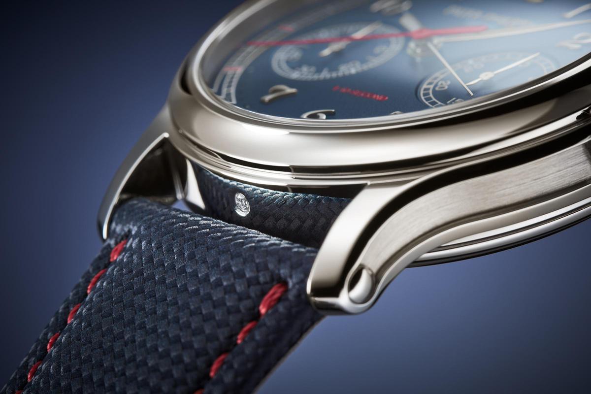 全新的Ref. 5470共計擁有31項專利技術,其中7項是因為這項新裝置而設,另一方面里頭使用了Oscillomax?矽擒縱套件,則是繼5550P之后第二度使用在量產表款之中。表徑為41mm鉑金表殼,藍色的面盤、紅色指針,以及相同配色的牛皮表帶與其縫線,是一款具備強烈運動外型的計時碼表。