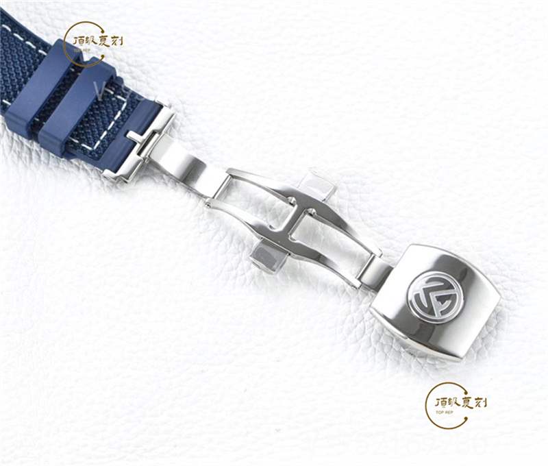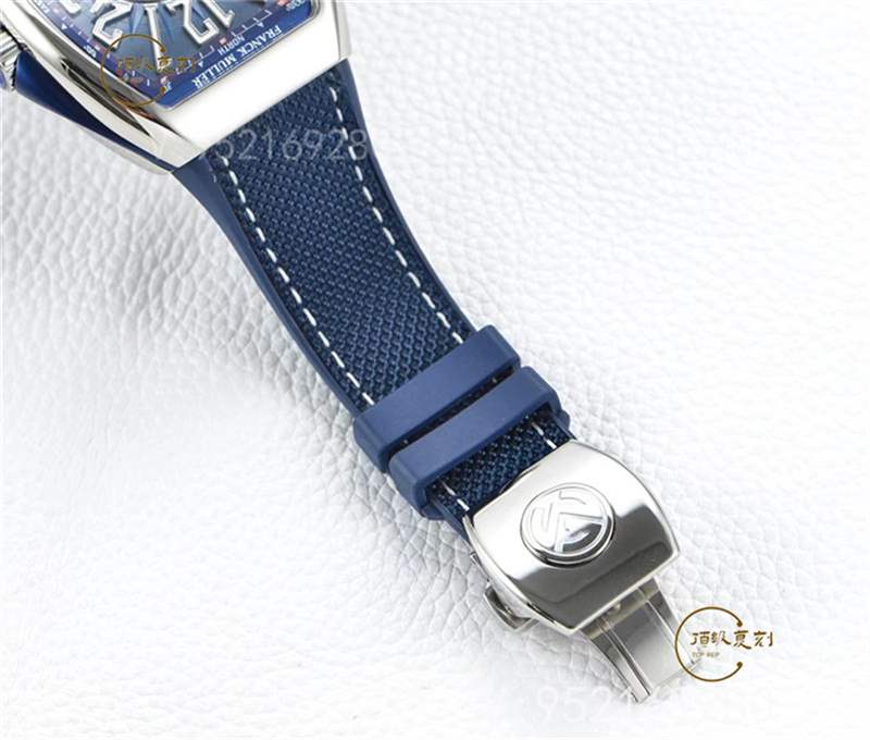 4.表帶扣,雙層表帶結構同步正品,正面采用人工纖維,背部則是天然橡膠,佩戴舒適冬暖夏涼,舒適感極佳。搭配法穆蘭經(jīng)典折疊表扣,可與正品互換。