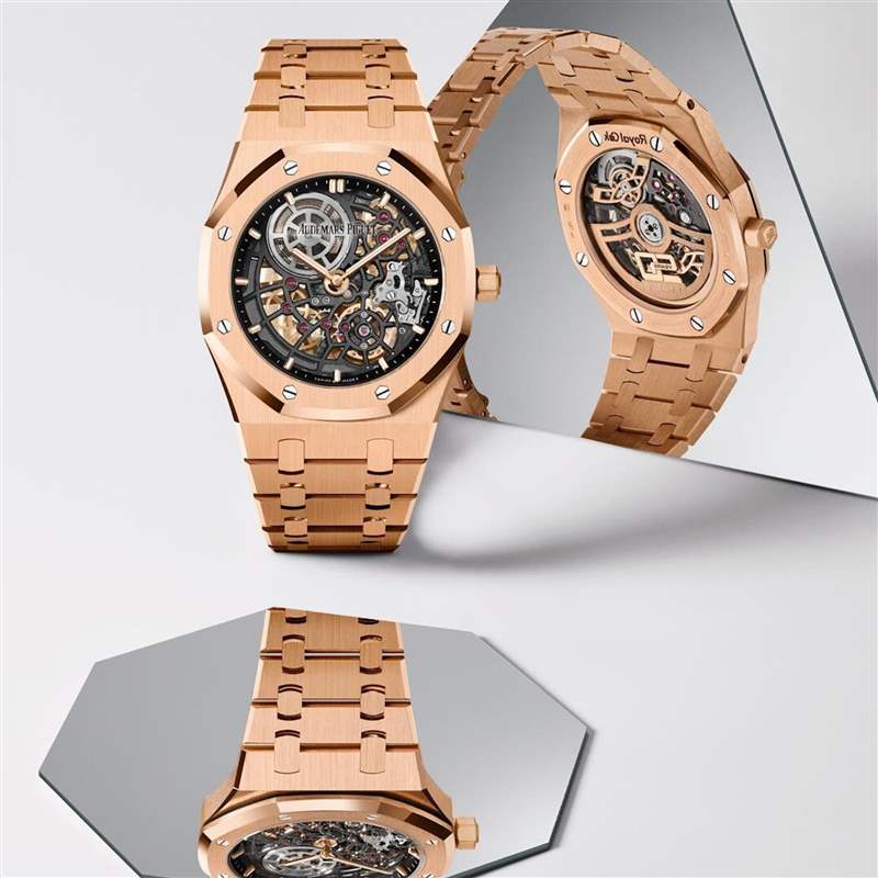 皇家橡樹Jumbo超薄鏤空表分別有不銹鋼款和玫瑰金款,其中定價較高的后者(型號162040R)或許因為2022年貴金屬浪潮又回歸的關系,使得它備受表迷矚目之外,實際上這款手表在二級市場上的表現也很驚人,據國外媒體Watchanalytics觀察,162040R今年最高曾出現高于定價三倍的報價,可見手表炙手可熱的程度。