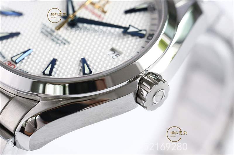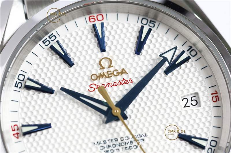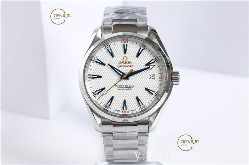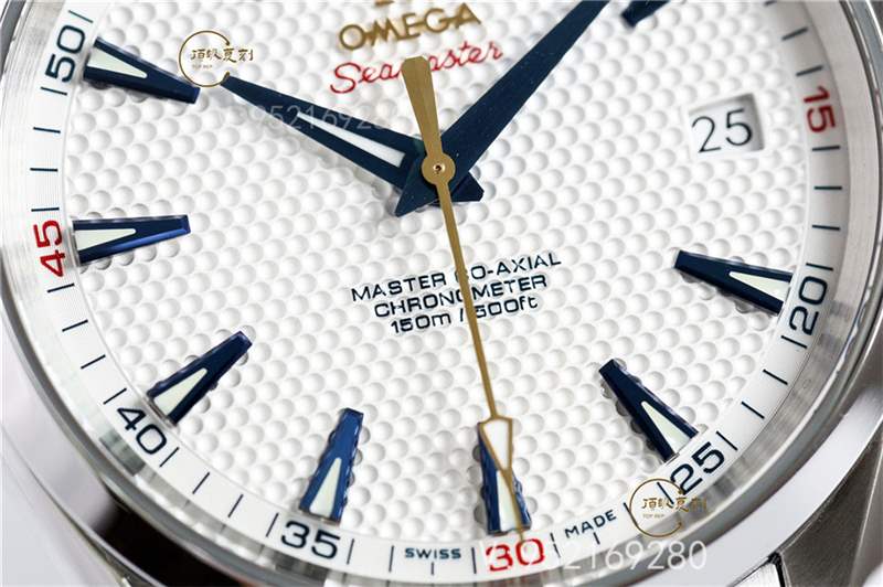 VS廠歐米茄海馬海馬Aqua Terra “萊德杯”限量版,金針隊長 41.5mm搭載1:1 8500機芯1:裝飾獨特的,高爾夫球狀機構銀色表盤,搭載18K 黃金秒針,白藍紅金四色呼應萊德杯色彩組合。 與正品一致1:1自動上鏈同軸機芯,雙向上鏈系統能縮短上鏈時間。自動陀上飾有獨特的阿拉伯日內瓦波紋,陀上印著萊德杯標志。喜歡金針隊長,還有個不二的選擇!