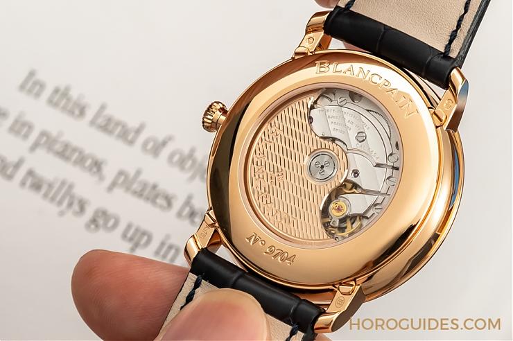 寶珀是一個具有全方位自制能力的表廠,不管研發、品管……全程無須假手他人,擅長制作中高階等級機芯。也因此,寶珀表款向來可靠,機芯品質無庸置疑。透過表背寬廣的藍寶石水晶底蓋,可欣賞到機芯的精雕細琢,從夾板上的日內瓦波紋,到紅金自動盤上的蜂窩狀圖案,一覽無遺。